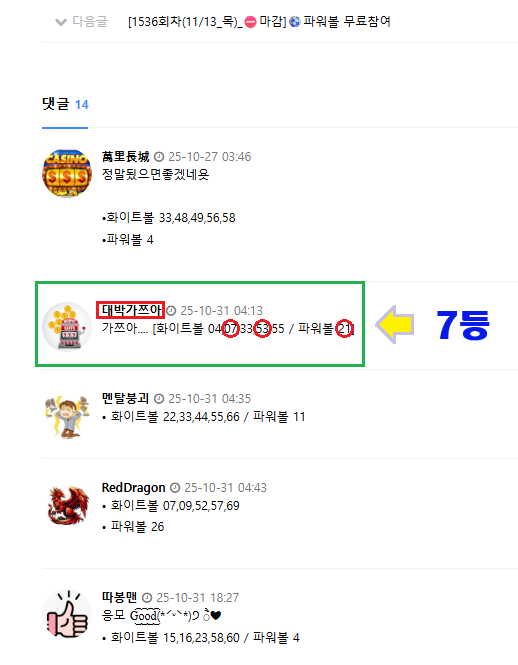 • 1536회차(2025년11월13일_목) 파워볼 당첨자 | ||||