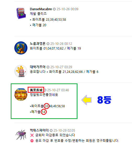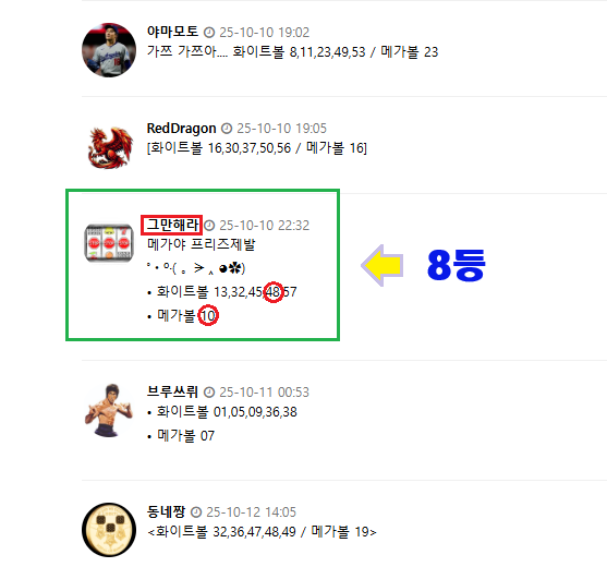 그만해라 | ☞확인 | 8등 | 3,000 P | 2025.10.23 |